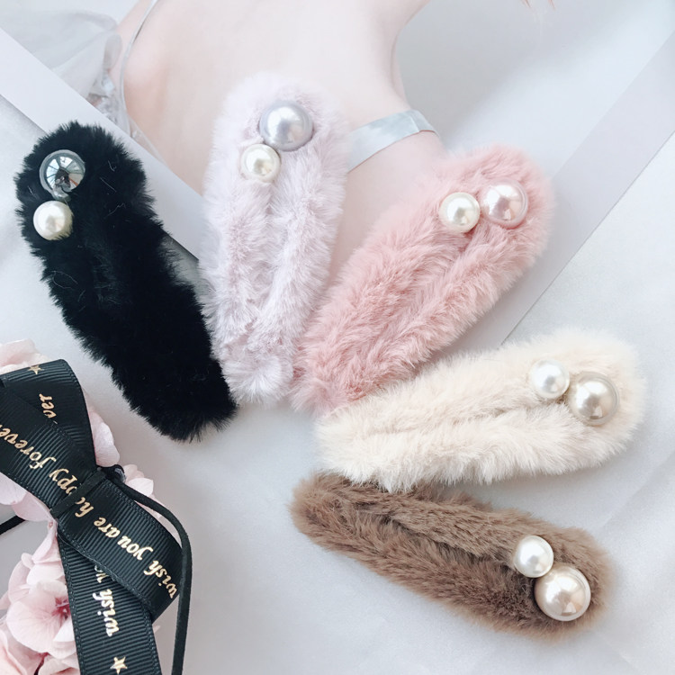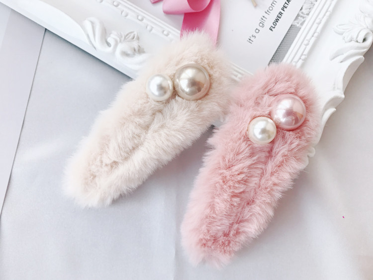 Hand custom delicate small hairpin ~ rabbit plush small communal pearl hair decoration BB clamp