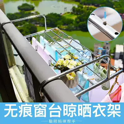 Stainless steel window balcony shoe rack anti-theft window sill artifact hanging cool clothes hanger folding telescopic quilt drying rack
