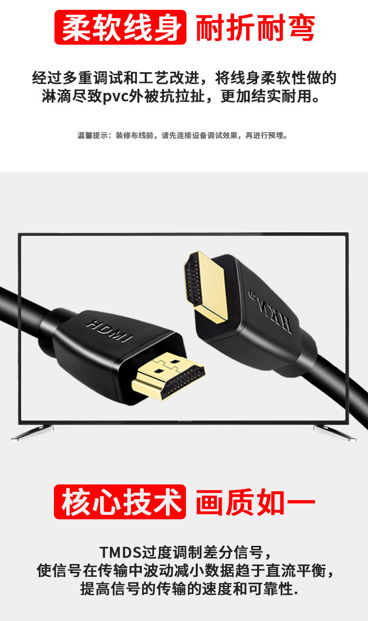 Guangdong haikang 2 0 version supports 4K3D HD HDMI line TV computer projector HDMI high picture quality line 15 m