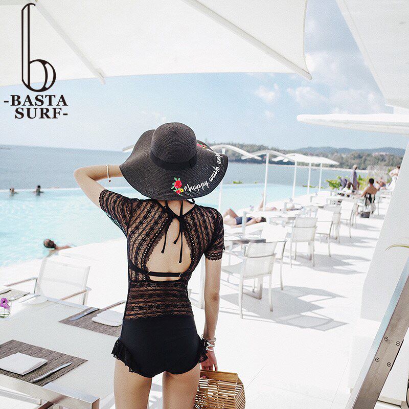 ins net red swimsuit female lace sexy cover belly conservative swimsuit two-piece hot spring vacation long-sleeved gather swimsuit