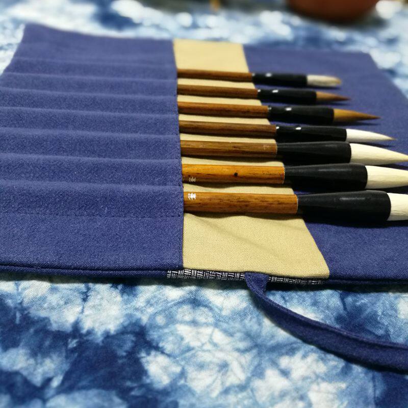 Chinese style handmade brush curtain lower case and brush pen curtain fabric roll pen bag brush storage four treasures of the study