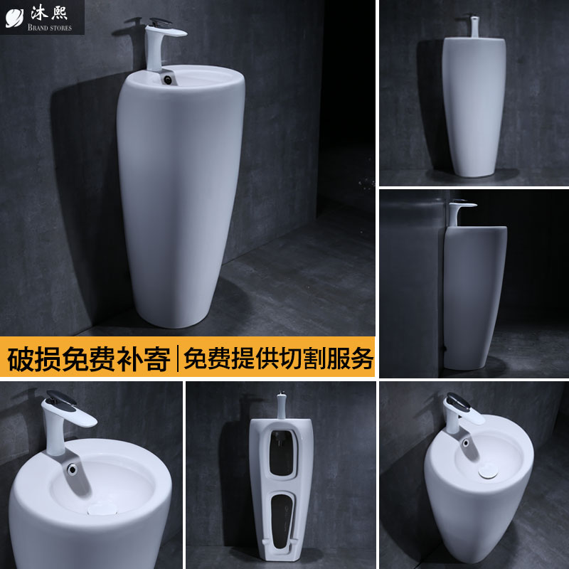 Integrated ceramic column basin balcony washbasin square makeup room Mini home washbasin floor washing desk