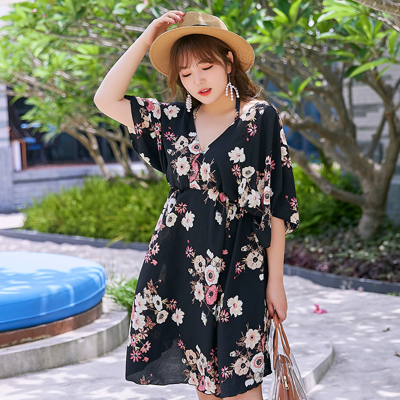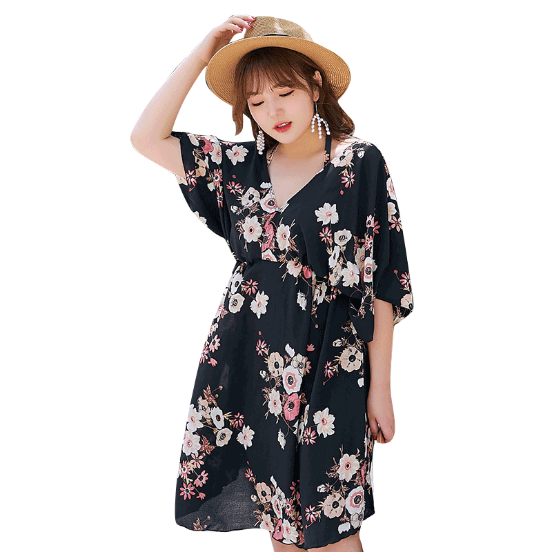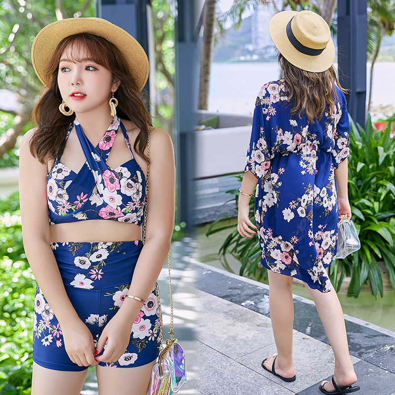 Two-piece swimsuit women's big size fat mm200 pounds loose belly cover thin high waist three-piece blouse mother's hot spring