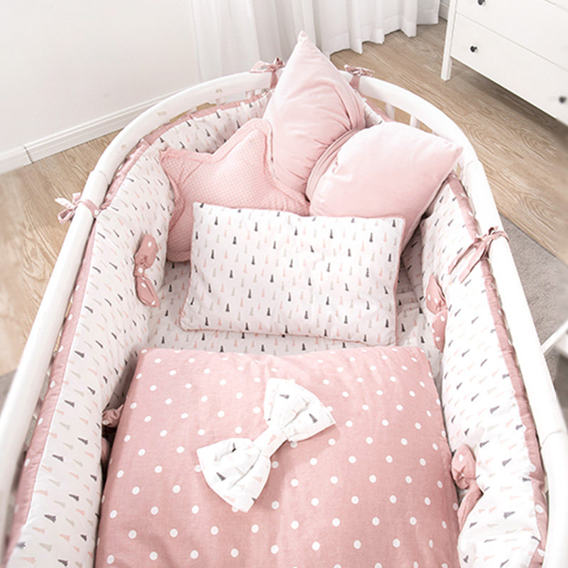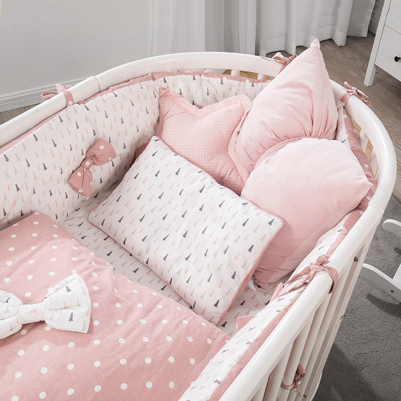 Crib four-piece set bedside anti-collision fence Children Baby splicing block cloth bedding kit cotton removable and washable