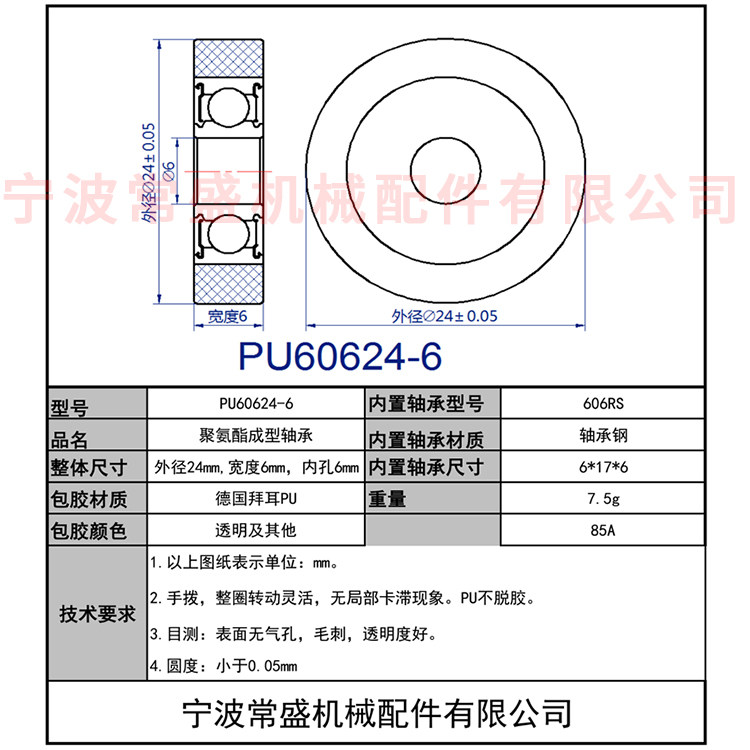 Polyurethane wheel roller PU60624-6 rubber roller forming bearing wear and quiet