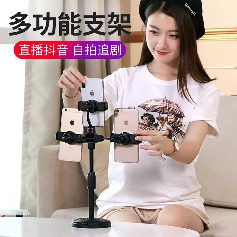 Anchor Mobile Live Bracket Desktop Multifunctional Lazy Bedside Watching TV Video Video Shooting Photo Beauty Fill Light Kuaishou Equipment Universal Full Set of Net Red Douyin Double Support Shelf