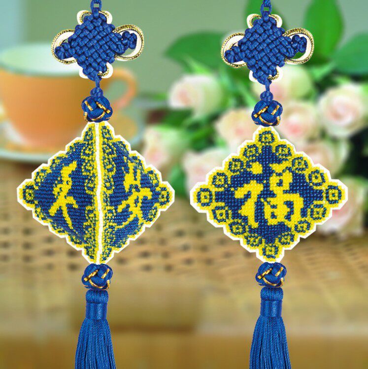 Finished full pearl embroidered beads in the car Cross-embroidered car pendants hanging accessories The new car pendant of Ping An Fo
