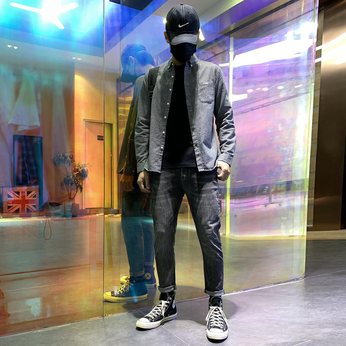 Hong Kong version of spring and autumn striped long-sleeved shirt men's Korean version of the trend spring shirt men's casual inch coat men's