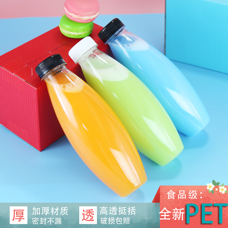Large mouth food grade disposable transparent plastic bottle with lid thickened juice milk tea beverage pet enzyme wine bottle