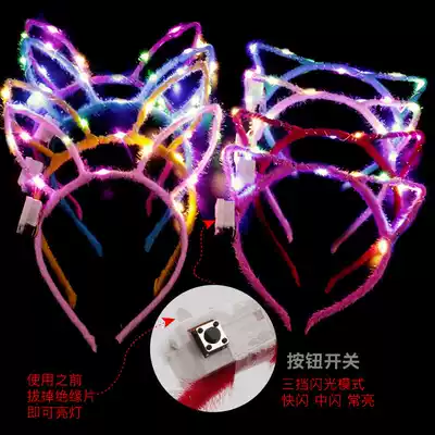 New colorful luminous plush cat ear headgear headgear flashing lights night market stall Temple Fair hot sale toys