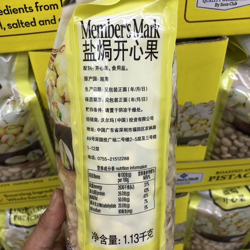 Sam pistachio Vietnamese import Members Mark salt ovens pistachios 1 13kg natural not bleached