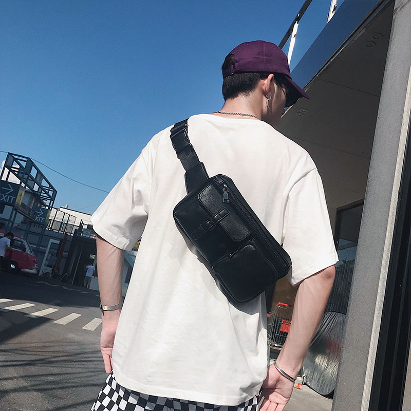 Hong Kong Multi-pocket small bag Genuine Leather Chest Bag New Men's Bag Fashion Single Shoulder Slanted Satchel Korean version of the street purse