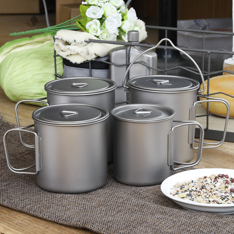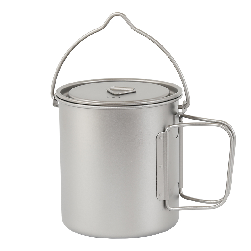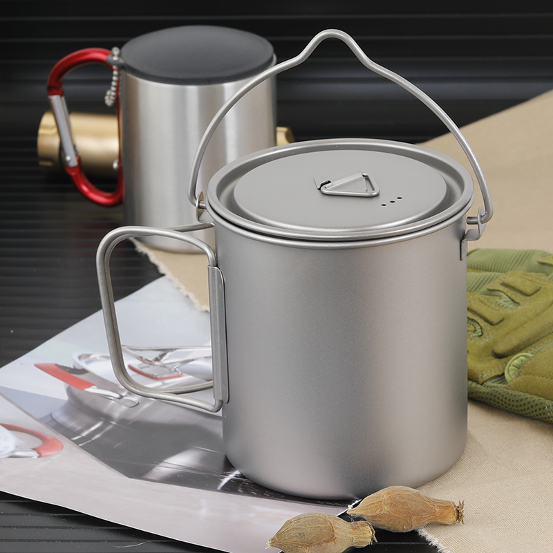 Outdoor pure titanium cup sling handle folding handle travel camping pot with cover Ta8315BH-1