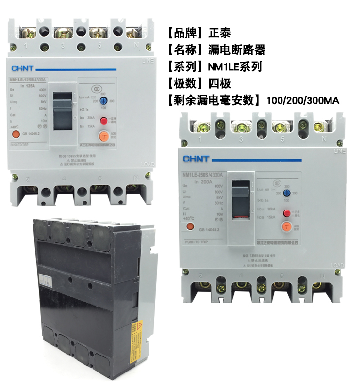 Zhengtai NM1LE-400S 4300A 225A250A315A350A Three-phase Four Leakage Protection Circuit Breaker