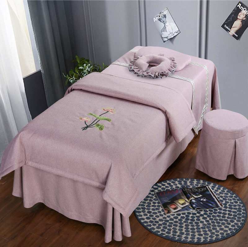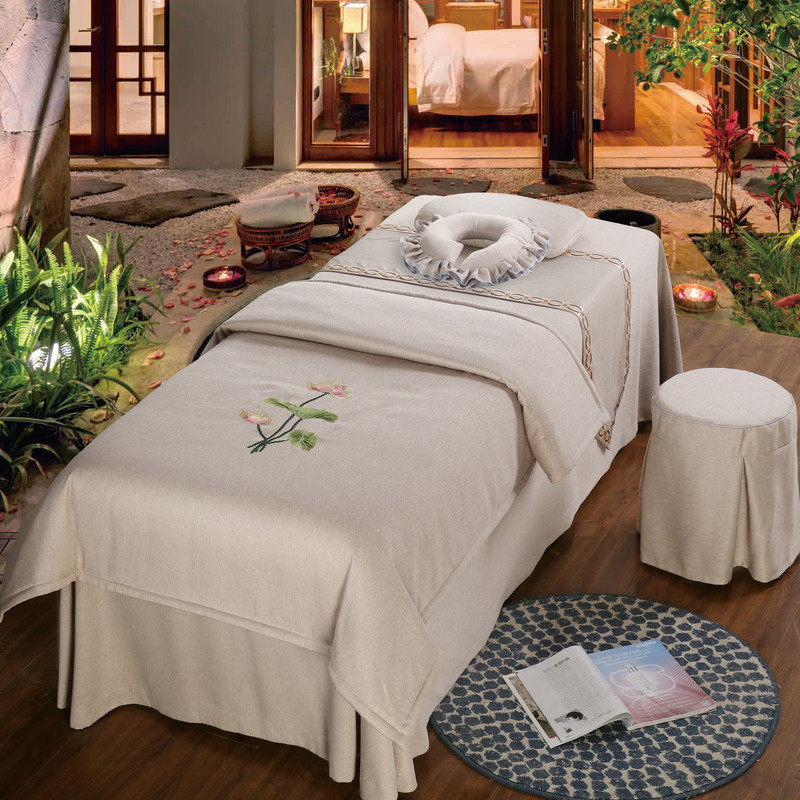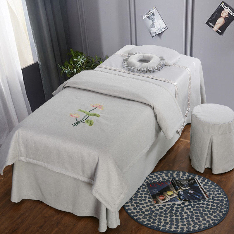 Goldsmith beauty bed four-piece set of Chinese pastoral style Korean physiotherapy massage bed cover custom-made non-cotton simple European style