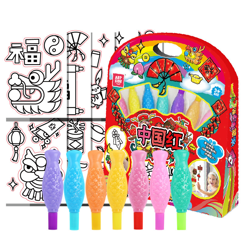 7 30ml paint 8 sheets of cartoon coated with 7 30ml pigments 10 Zhang China Red Topic Drawing China Red Chinese New Year Painted Paper Suit China Red Coated 36 color 28g color mud flower