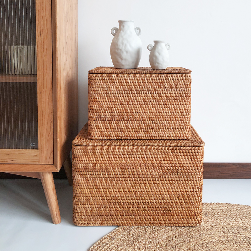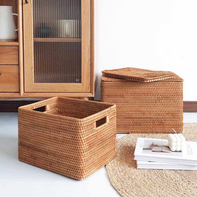 Vietnamese rattan storage basket dirty clothes storage sorting box large covered basket snack sundries bamboo basket storage basket
