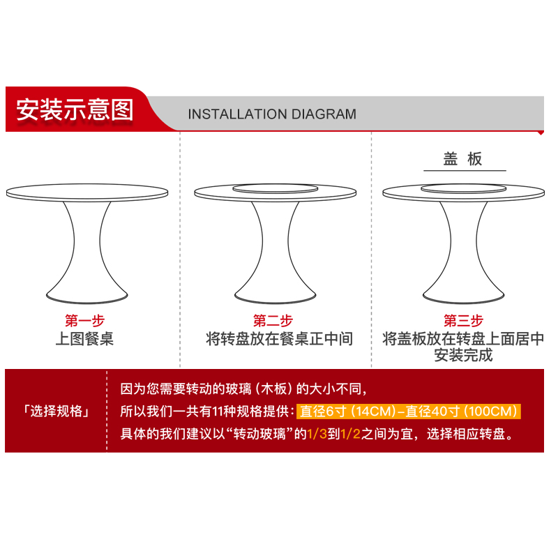 Dining table turntable base round table turntable bearing rotating glass Wood marble muffler aluminum alloy turntable seat
