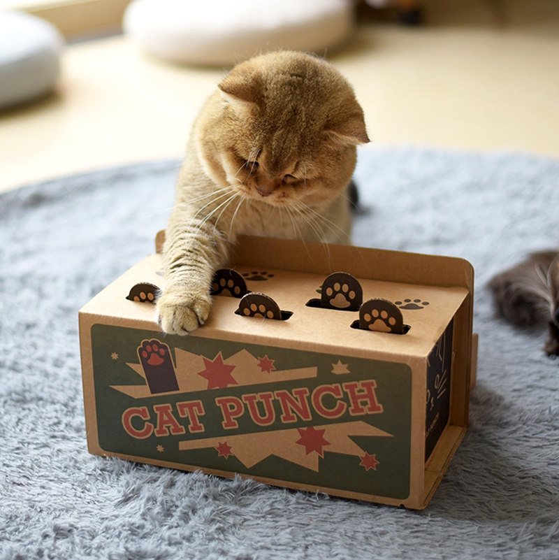 Min concave cat toys playing mouse pet toys kittens with paper box funny toys corrugated paper