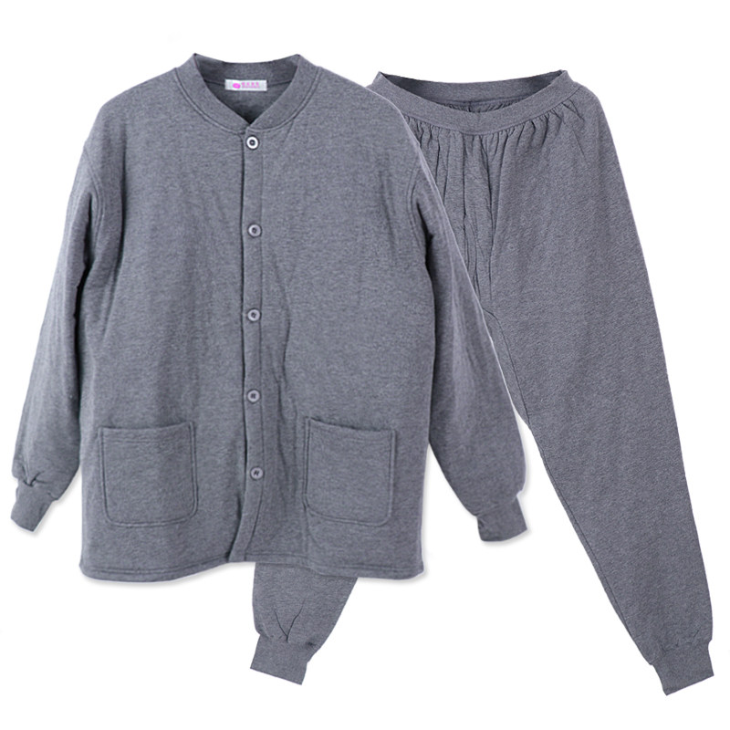 Middle-aged and the elderly three-layer padded heating clothes Men's fat plus-size quilted jacket cotton pants thickened home clothes