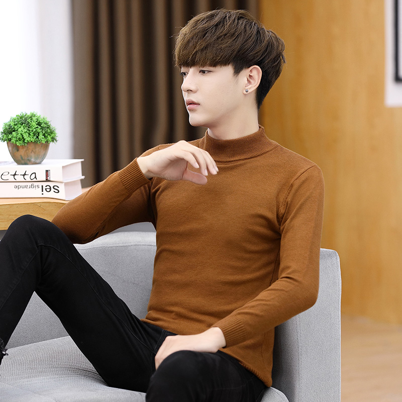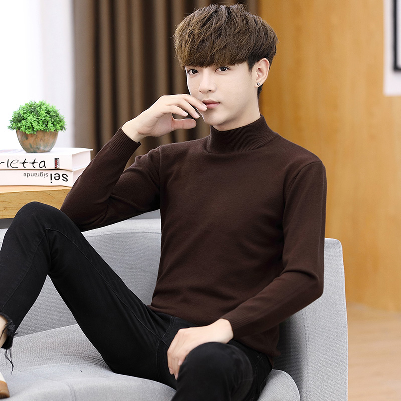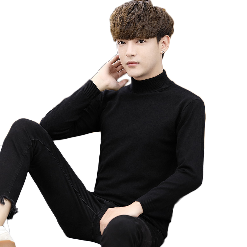 Teen pure black mid-half tall collar sweater men dress sweater sweater sweater in autumn winter