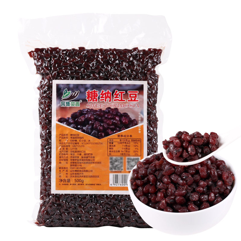 500g Red bean Honey Honey bean open bag Ready-to-eat cooked red bean sugar Natto milk tea Ice dessert baking accessories raw materials