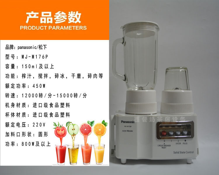 Panasonic Panasonic MJ-M176P commercial multi-function three-in-one juicer household bean dregs juice separation fruit