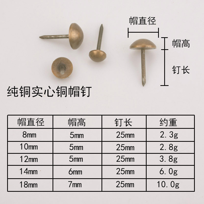 Chinese pure copper cap nail round nail imitation ancient solid copper nail big head nail for bronze nail sand foaming nail decoration hanging nail door nail
