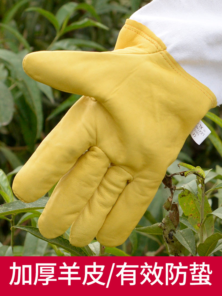 Sheepskin gloves soft thickened canvas breathable anti-bee sting protective gloves beekeeping bee hat beekeeping tools
