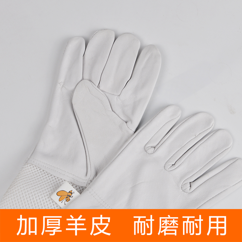 Bee gloves white sheep skin anti - bee sting long net hollow breathable and special protective gear for bees