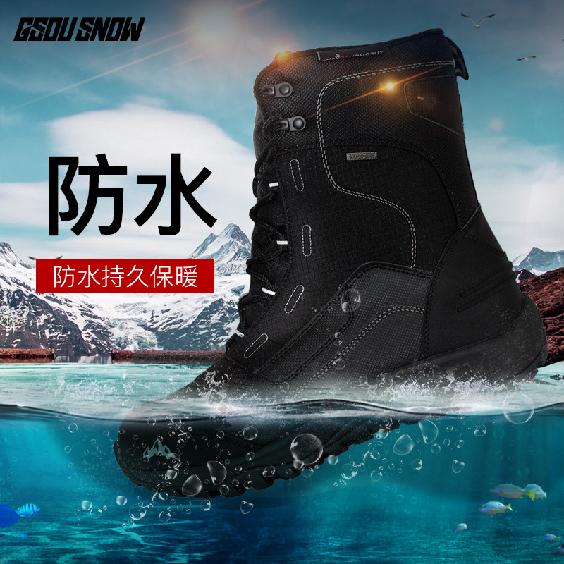 Gsou Snow outdoor snowy boots men's gush warm and waterproof ski shoes mountaineering Northeast Snow Township Tourist gear