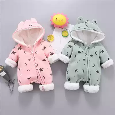 Autumn and winter cute baby jumpsuits for men and women babies winter clothes plus velvet warm clothes