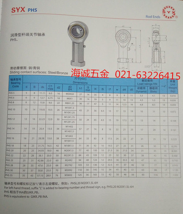 Shanghai Yongxing rod end joint bearing SYX PHS22 25 28 30 35 Chrome instead of imported