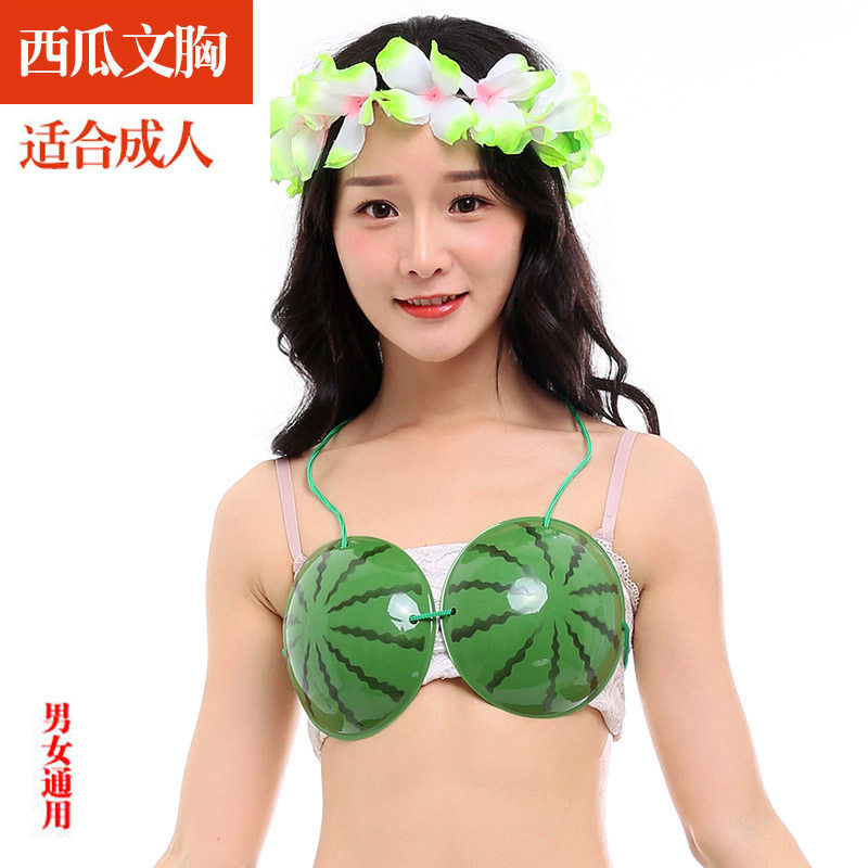 Watermelon pattern bra wedding kiss whole groomsman props Hawaiian hula accessories adult funny corset
