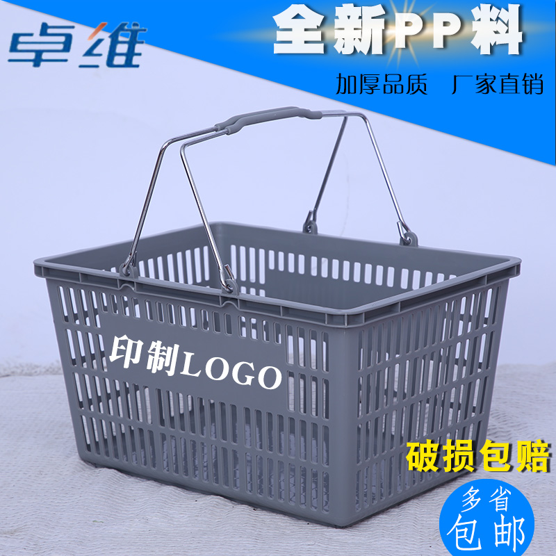 Supermarket shopping basket Household portable basket plastic vegetable basket large thickened basket frame Convenience store KTV plastic basket