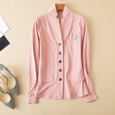 Classic good goods exquisite tiger head embroidery chic stand collar stretch knitted suit women's coat 186323
