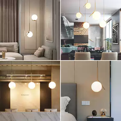 Nordic dining room chandelier bar lamp creative personality simple bedroom bedside glass ball chandelier single head decorative lamp