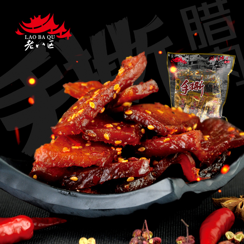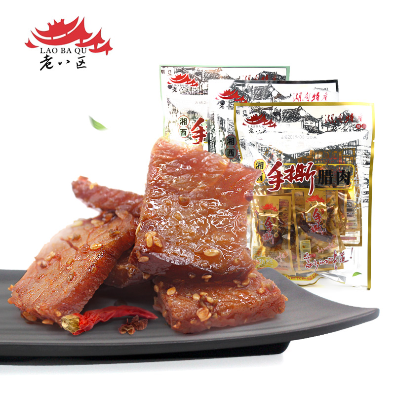Lao Ba District hand-torn bacon 100g Hunan Xiangxi Zhangjiajie specialty small package dried bacon snacks open bag ready-to-eat