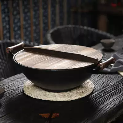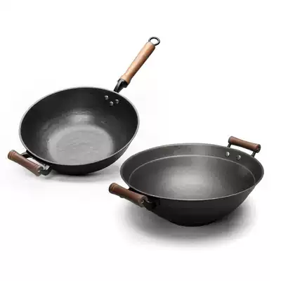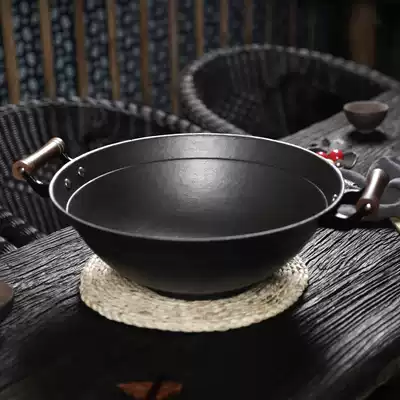 Shandong Tengzhou iron pot flavor world old-fashioned handmade iron pot set cast iron wok household gas binaural pot