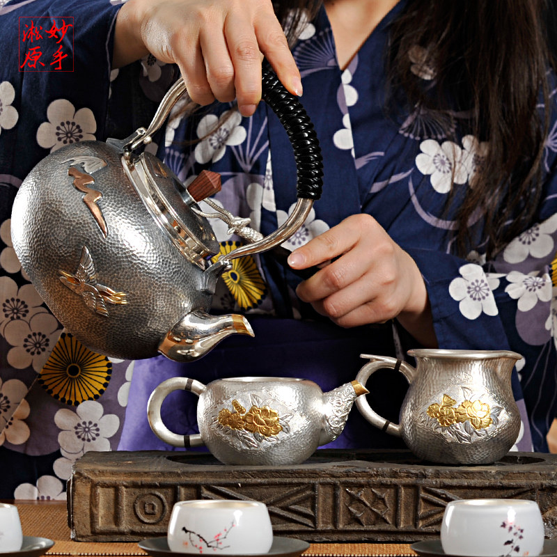 Magic Hangyuan Handmade 9999 Silver Kettle Pure Silver Kung Fu Tea Tool Silver Tea Kettle Japanese Silver Kettle