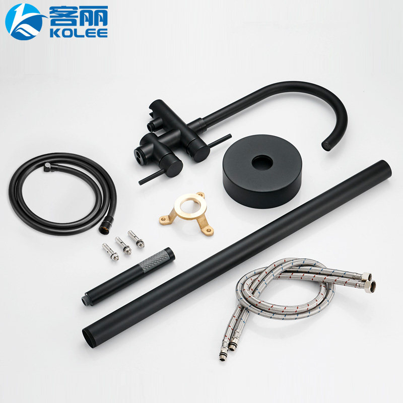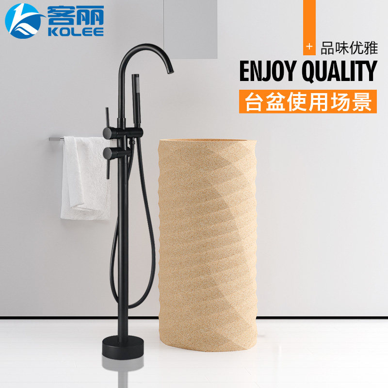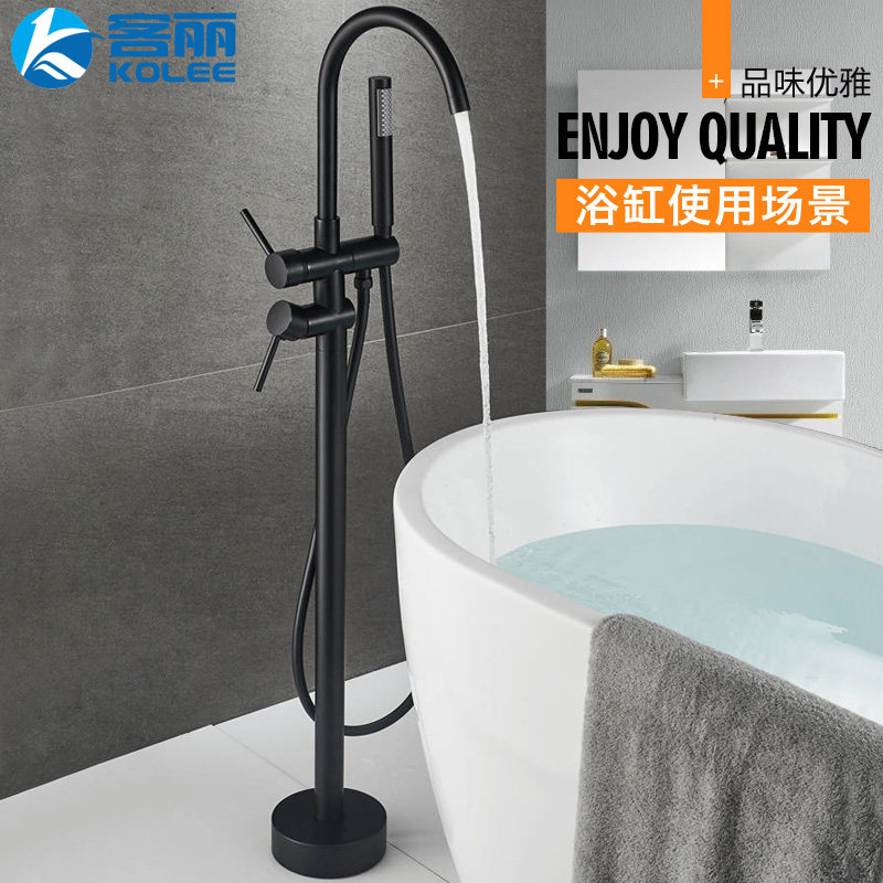 All copper black baking paint floor-to-ceiling bathtub hot and cold water faucet vertical cylinder side wall straight pipe opening floor-to-ceiling shower