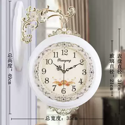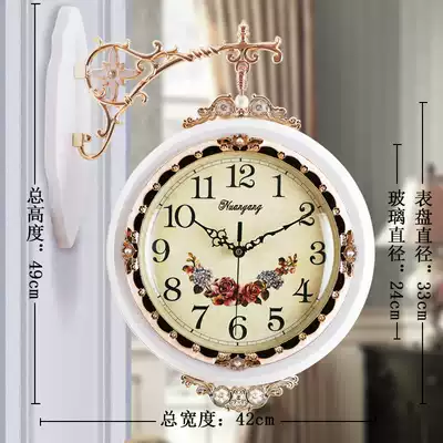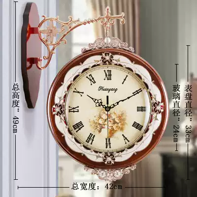 European style double-sided clock living room wall clock home solid wood creative two-sided decoration solid wood modern Wall silent hanging watch
