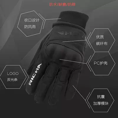 RICHA motorcycle riding gloves windproof and warm plus velvet motorcycle gloves Waterproof and fall-proof winter gloves Touch screen