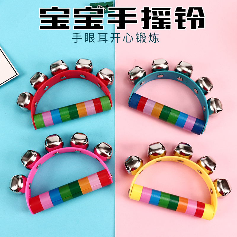 Baby rattle wooden baby hand rocking bell early to teach Puzzle Colored Toddlers Appeasement Bells Bell Bell Instrument Toys