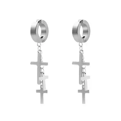(Can be worn without pierced ears)3 cross pendant earrings ear clip 2019 new trendy men and women tide ins ear needle