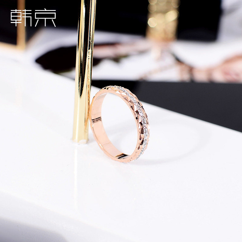 Han Kyong Rhombus Inlaid Diamond Ring Female Japan South Korea Tide Man Fashion Net Red Food Ring Not Falling color minimalist titanium steel ring
