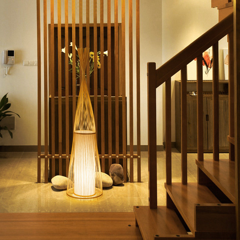 Day-of-the-floor lamp Zen Bamboo Weaving Living Room Bookroom bedroom Creative Southeast Asian Chinese Hotel Guest House Bamboo Art Lamps