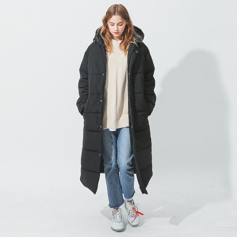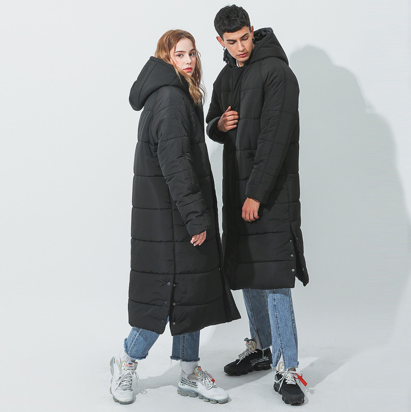 Autumn and winter Korean version of male and female lovers' length version cotton suit thickened cotton padded jacket oversize loose and large size boyfriend