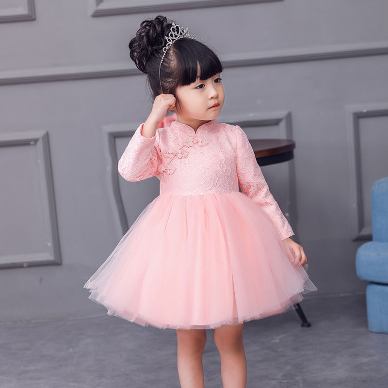Girl Princess Dress Spring Dress Baby Hanfu Spring Autumn Ancient Dress Qipao Toddler Toddler Toddler Don dress Children's web yarn dress