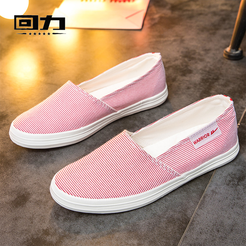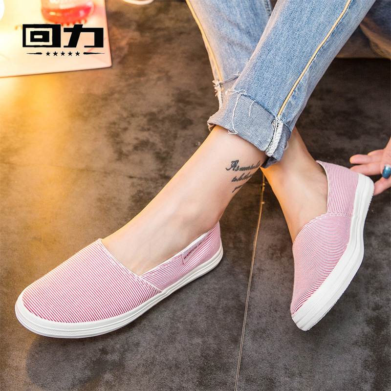 Huili women's canvas shoes ins women's shoes low top one pedal lazy shoes breathable stripe fashion casual women's shoes